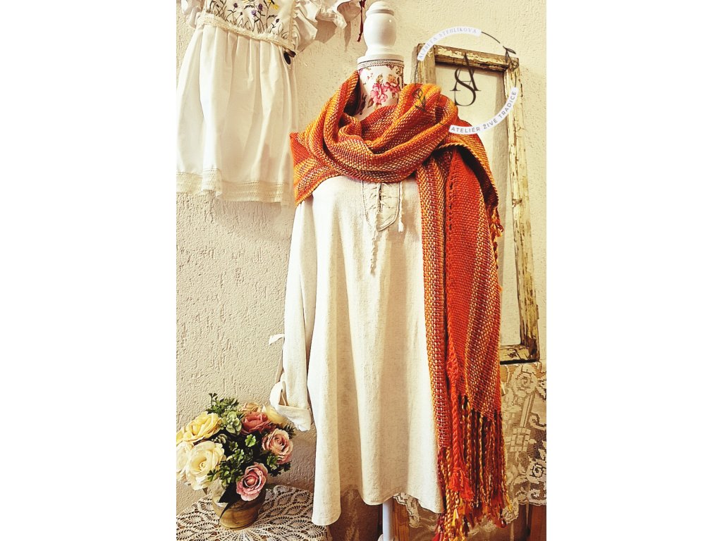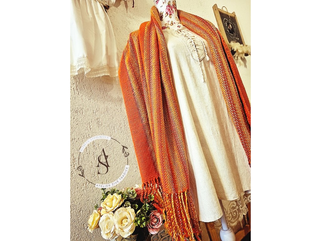 zakončení: ručně tvořené třásně